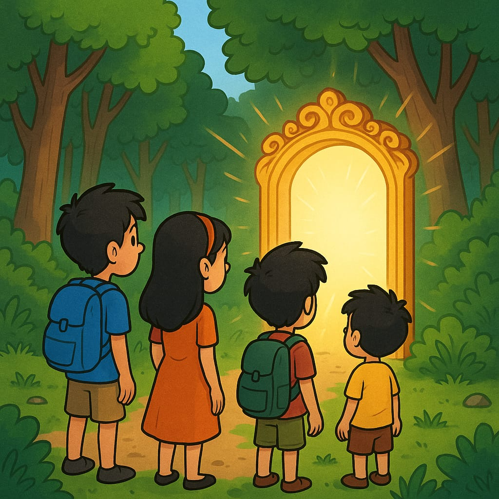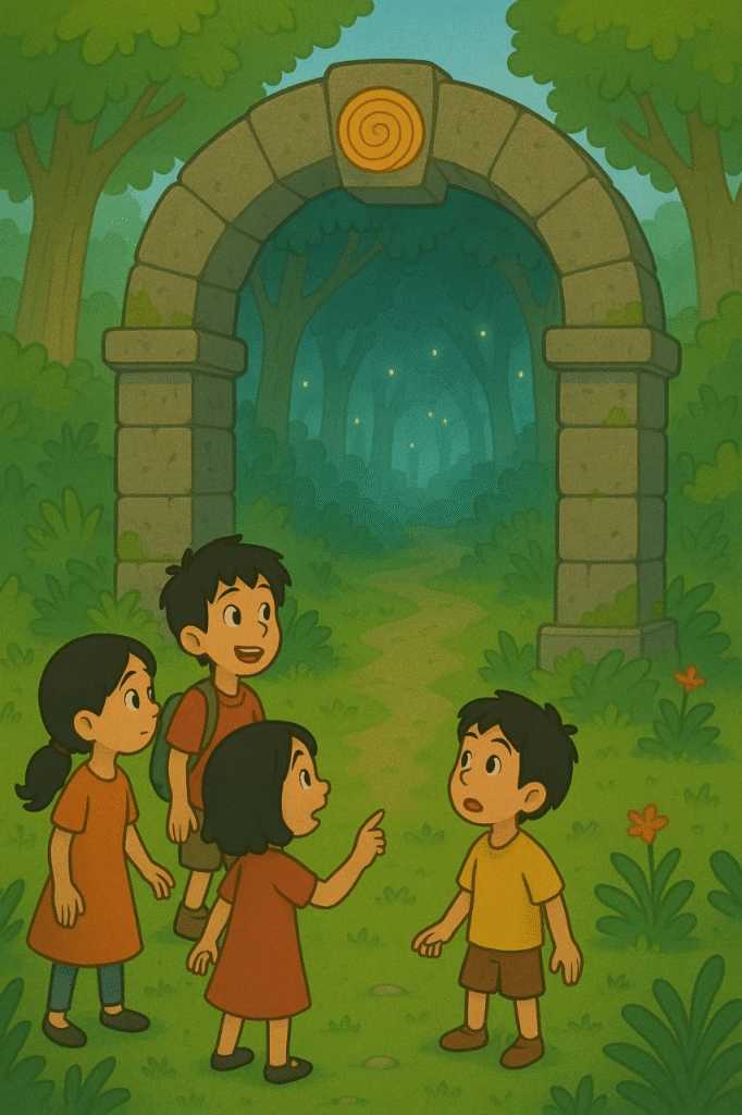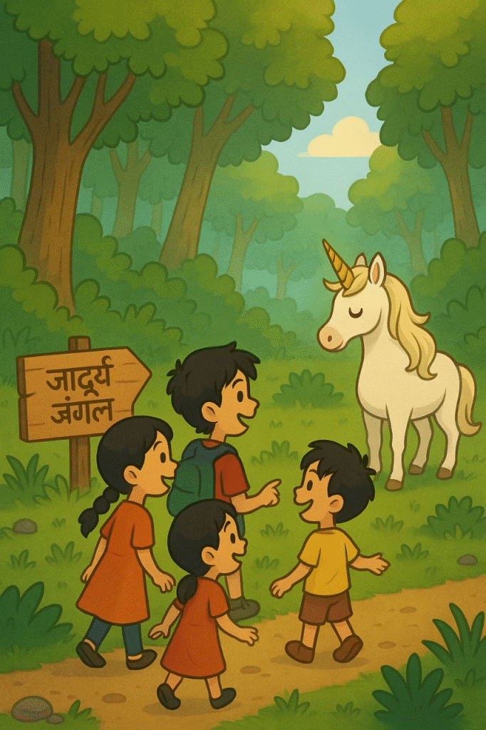 छोटे से गाँव चंदनपुर में चार सबसे अच्छे दोस्त रहते थे — नीलू, पिया, रोहन और छोटू। गाँव चारों तरफ हरियाली से घिरा था, लेकिन गाँव के उत्तर दिशा में एक घना, रहस्यमयी जंगल था, जिसे सब “जादुई जंगल” कहते थे।