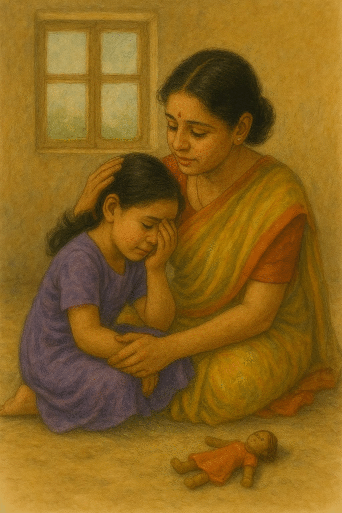 गाँव के किनारे एक छोटी-सी कच्ची झोपड़ी में रहती थी सात साल की गुड़िया। हाँ, उसका असली नाम गौरवी था, पर सब उसे प्यार से “गुड़िया” ही कहते थे। उसके पापा खेतों में मजदूरी करते और माँ पास के मंदिर में सफाई। घर में ज़्यादा कुछ नहीं था, पर गुड़िया की दुनिया में खुशियाँ कम न थीं।
