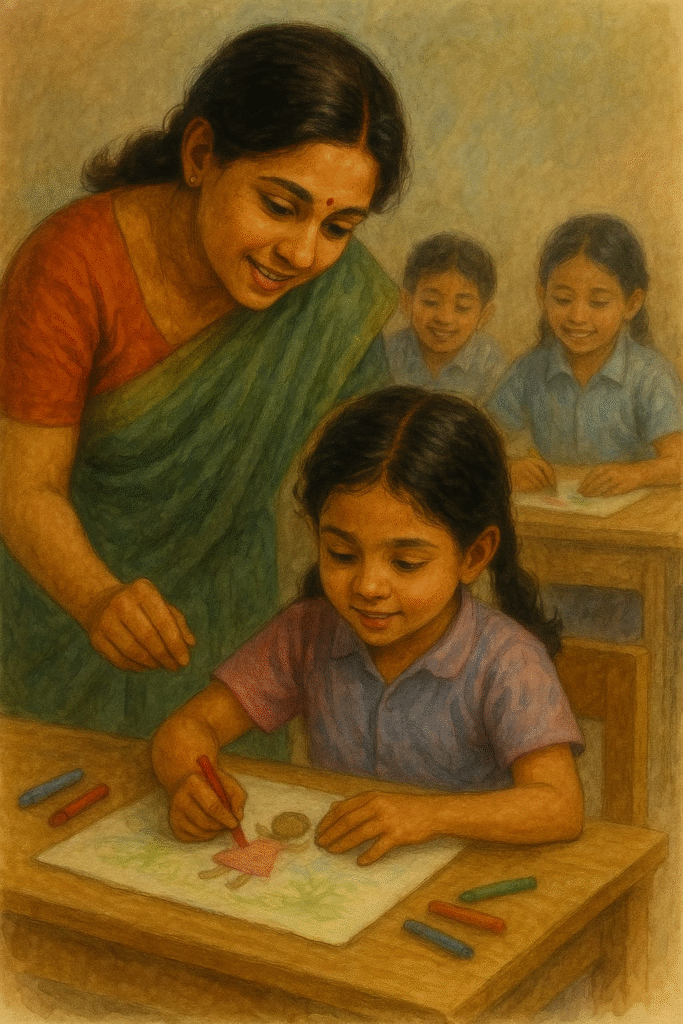 क्लास में कुछ बच्चे हँसे, पर शिक्षक की आँखें नम थीं।