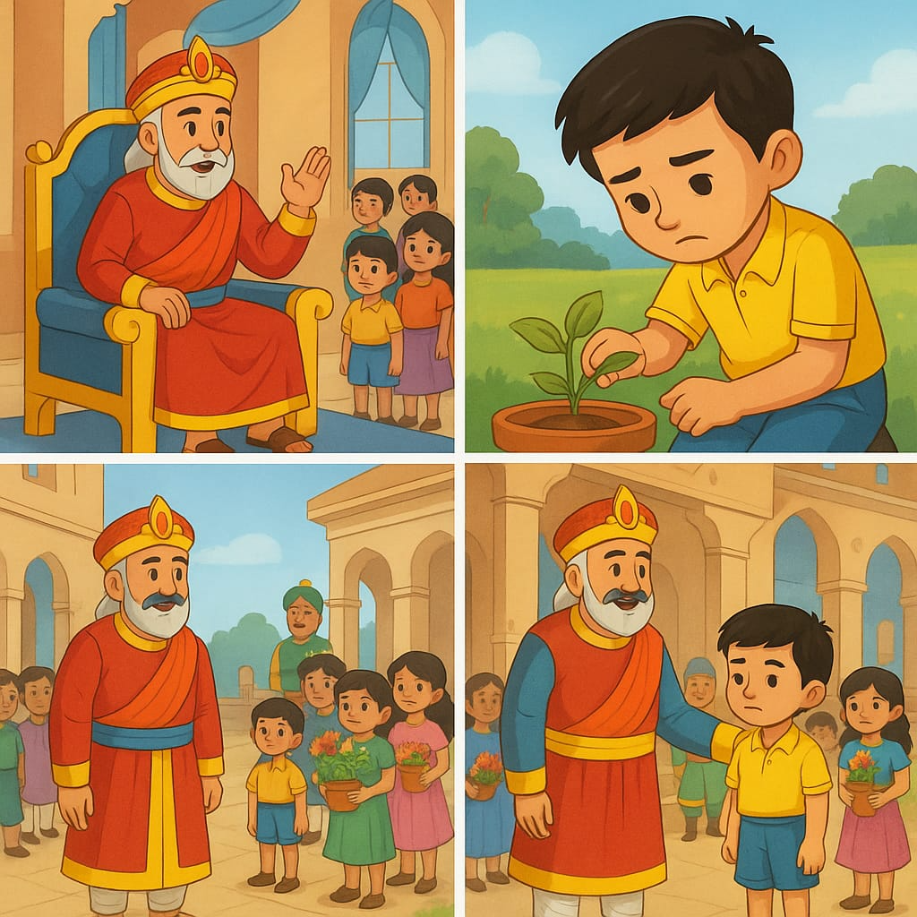 “सभी बच्चों को राजमहल बुलाया जाएगा और उन्हें एक-एक बीज दिया जाएगा। जो बच्चा एक साल बाद सबसे सुंदर पौधा उगाकर लाएगा, वही इस राज्य का भविष्य होगा।”