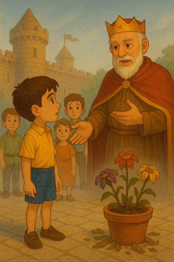 एक साल बाद, सभी बच्चे अपने पौधे लेकर राजमहल पहुँचे। कोई सुंदर फूलों का पौधा लाया, कोई फलदार पेड़। रंग-बिरंगे गमलों से राजमहल का प्रांगण सज उठा था।
