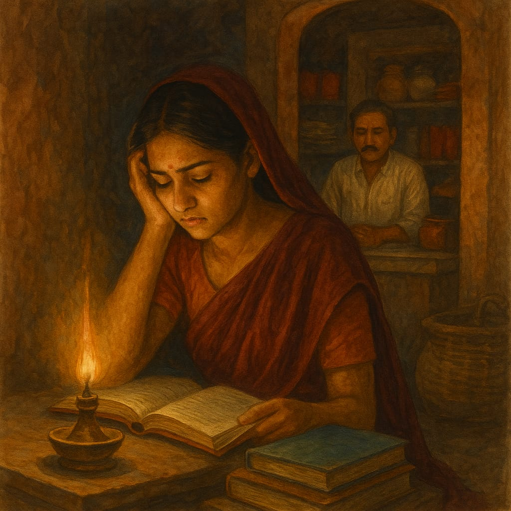 लेकिन सरिता के भीतर आग थी। उसने घर पर ट्यूशन शुरू कर दी, और अपने भाई-बहनों को भी पढ़ाने लगी। उसने खुद की पढ़ाई जारी रखी — रात को दीये की रोशनी में, दिन में दुकान पर बैठकर।
