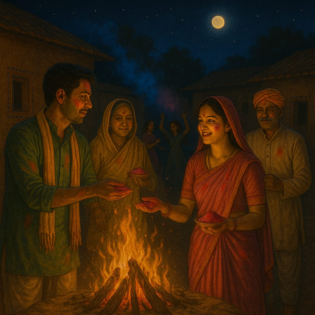 होली से एक दिन पहले होलिका दहन की रस्म होती थी। गांव के लोग लकड़ियां, गोबर के उपले और सूखे पत्ते जमा करते। गांव की सबसे वृद्ध महिला, इस बार दादीसा, अग्नि जलातीं।